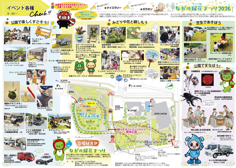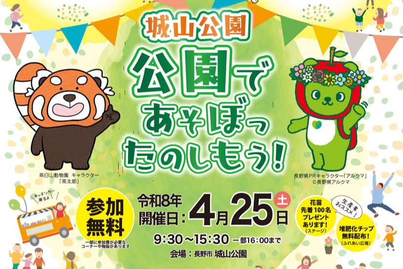 長野県長野市で『ながの緑花まつり2026』が2026年4月25日開催。会場は、善光寺横にある「城山公園」。イベントでは、「緑花まつりゾーン」と「緑と花のフェスティバルゾーン」の2つのゾーンに別れ、ステージイベントやゲーム、花苗販売、ガーデニング関連の体験、防災体験、芝生遊び、キッチンカーの出店など、多彩な内容が予定されています。当日は、先着100名まで花苗をプレゼント。GWのはじまりを自然豊かな公園でたのしんでみて。