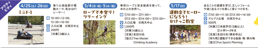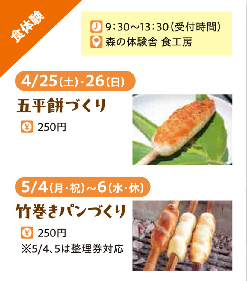 このほか、園内ではロードトレインが毎日運行するほか、デイキャンプ場も4月25日(土)からオープン。