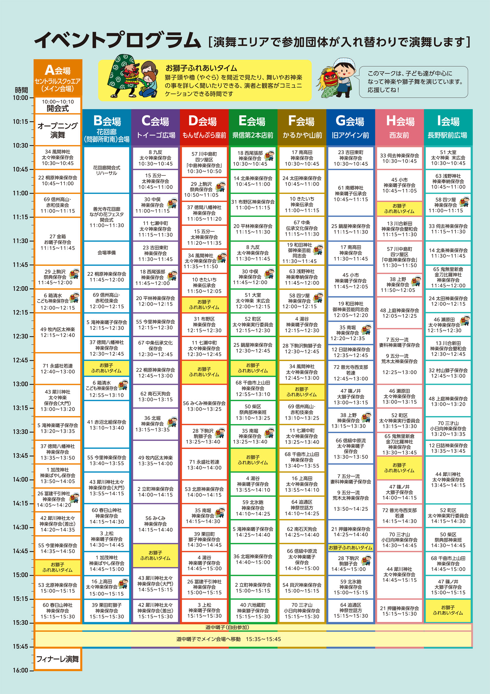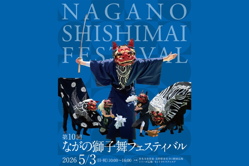 長野県長野市の「ながの表参道セントラルスクゥエア」をメイン会場に、「長野駅善光寺口駅前広場」「善光寺表参道」「TOIGO広場」などで『第10回ながの獅子舞フェスティバル』が2026年5月3日(日・祝)に開催。次世代への伝統芸能の継承と、世代や地域を超えた交流を目指して行われるイベント。市内外の団体が参加。各会場で入れ替わりながら獅子舞や神楽などが披露されます。