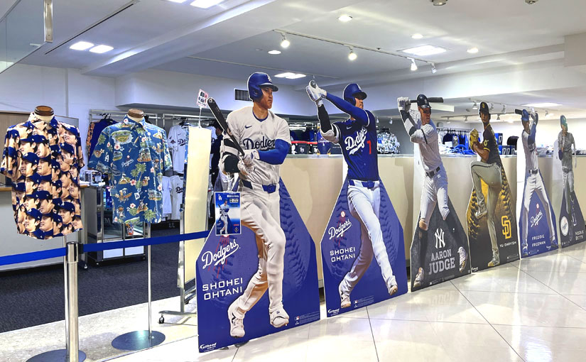会場ではドジャースの大谷翔平選手や山本由伸選手をはじめとする日本人メジャーリーガーのアパレル・フィギュアなどの公式グッズが販売中。