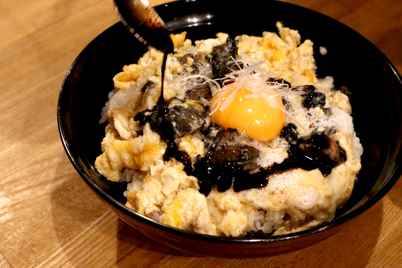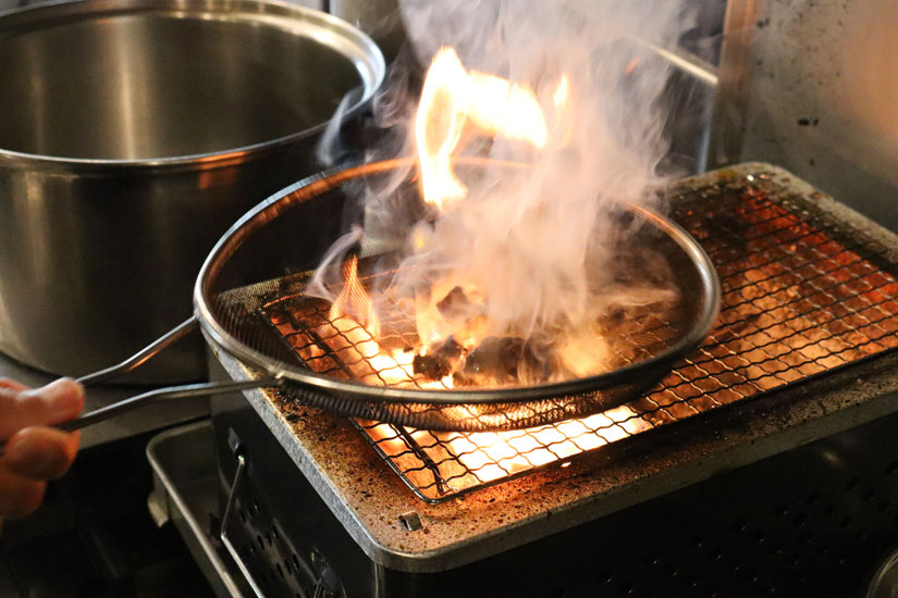炭火で焼き上げた鶏の香ばしさを活かした「黒親子」は、ラーメンと同様に“黒の世界観”で仕上げた一品。仕上げにマー油を垂らすことで、コクと香ばしさ、奥行きを加えています。炭火に落ちる脂が炎を上げ、香ばしさをまとわせていく工程も、この一杯の味わいを支える要素のひとつ。サイドメニューにとどまらない満足感を目指しています。