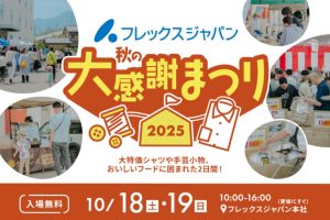 10/18(金)10/19(土)『フレックスジャパン秋の大感謝まつり2025』倉庫開放の大特価&最大62%OFF!地元グルメとハンドメイドマルシェも@長野県千曲市