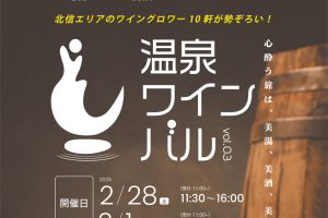 2/28(土)3/1(日)『温泉ワインバル vol.03』開催!北信エリアのワイングロワーが10社集結!日帰り温泉・ワイン・食事に酔いしれる特別な2日間@長野県長野市